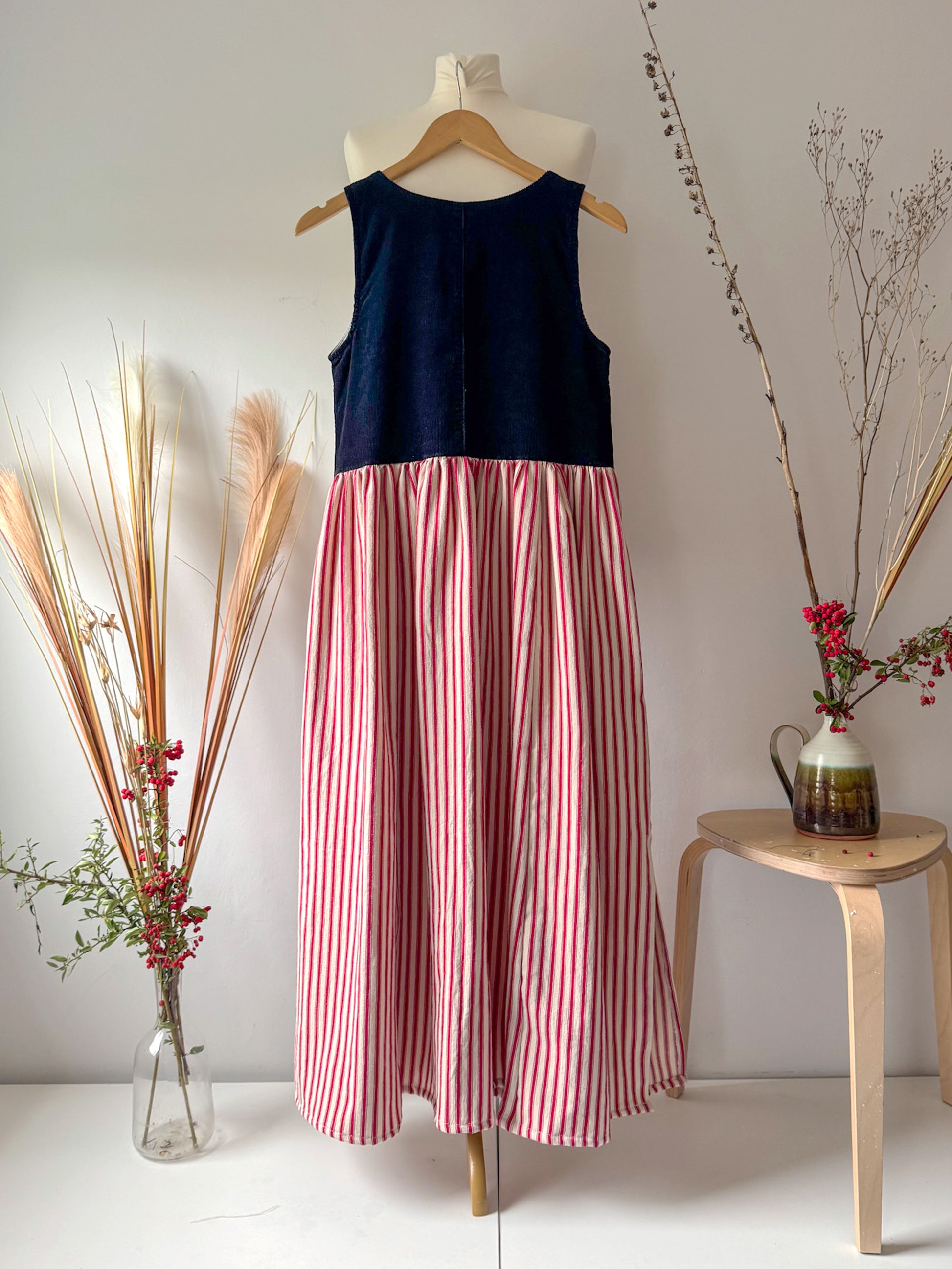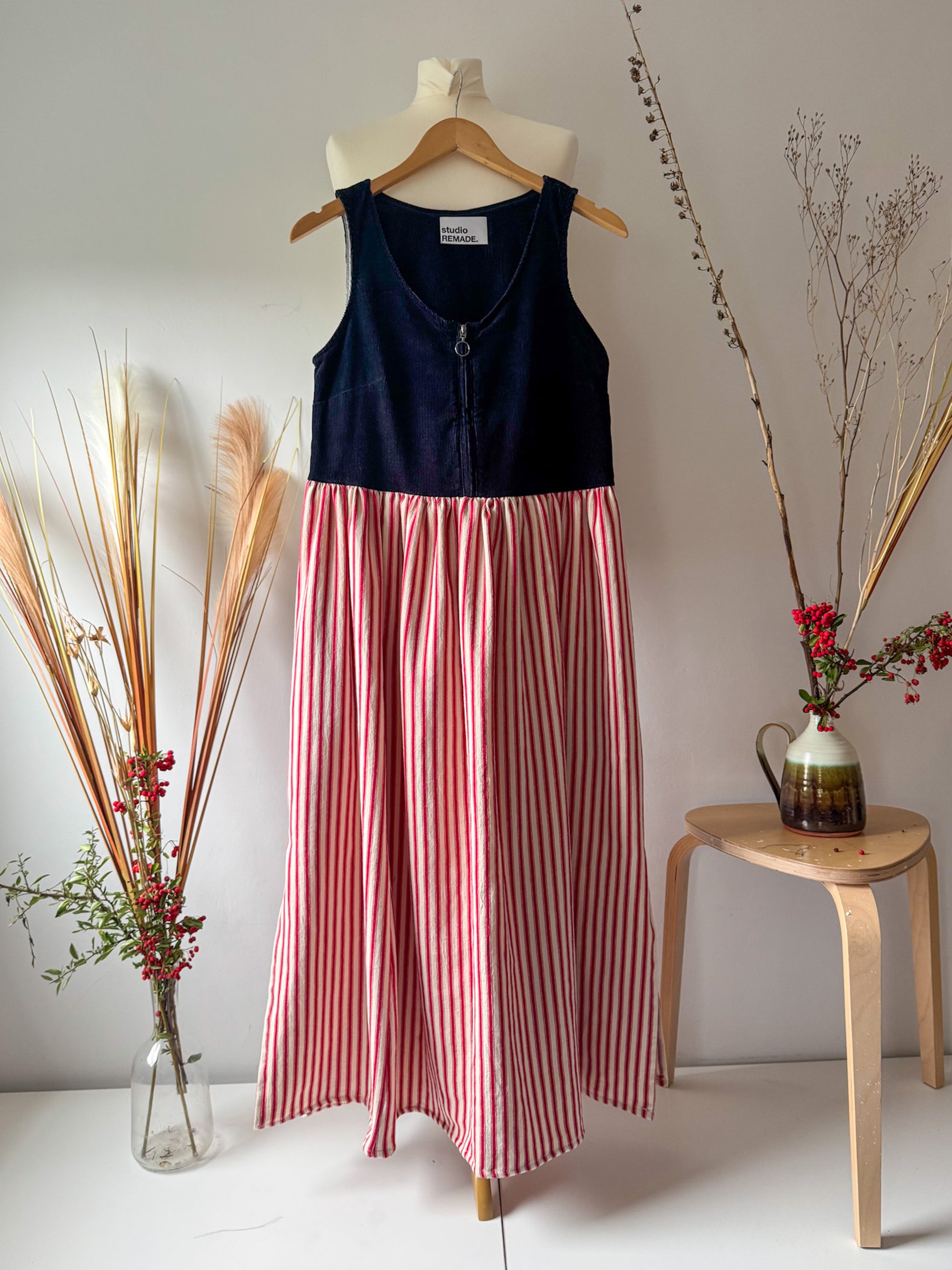 An effortless autumn staple, The Lyla is handmade in my UK studio using a beautiful premium ticking stripe cotton canvas paired with recycled corduroy. Designed with layering in mind, it’s the perfect piece to carry you through the cooler months.