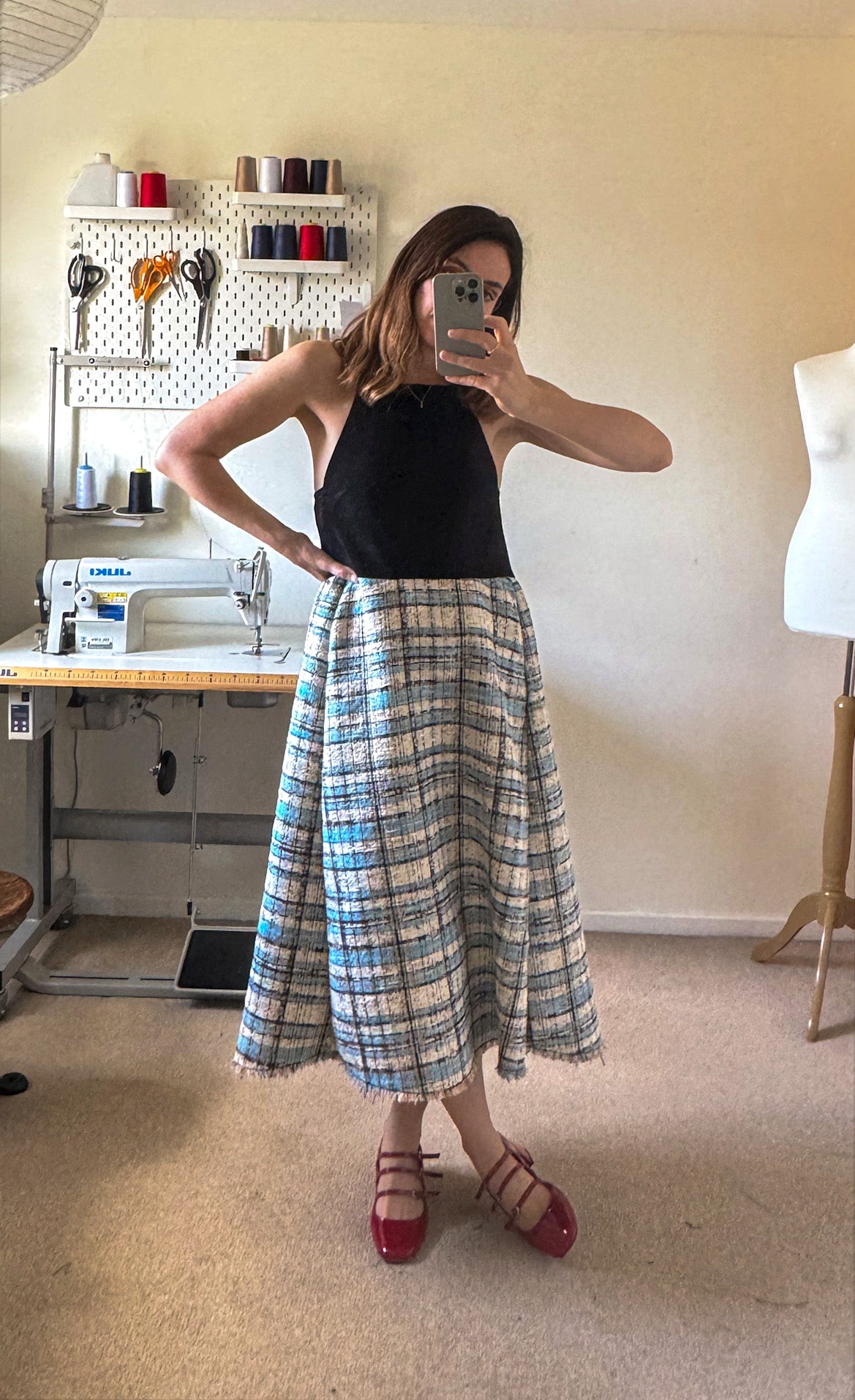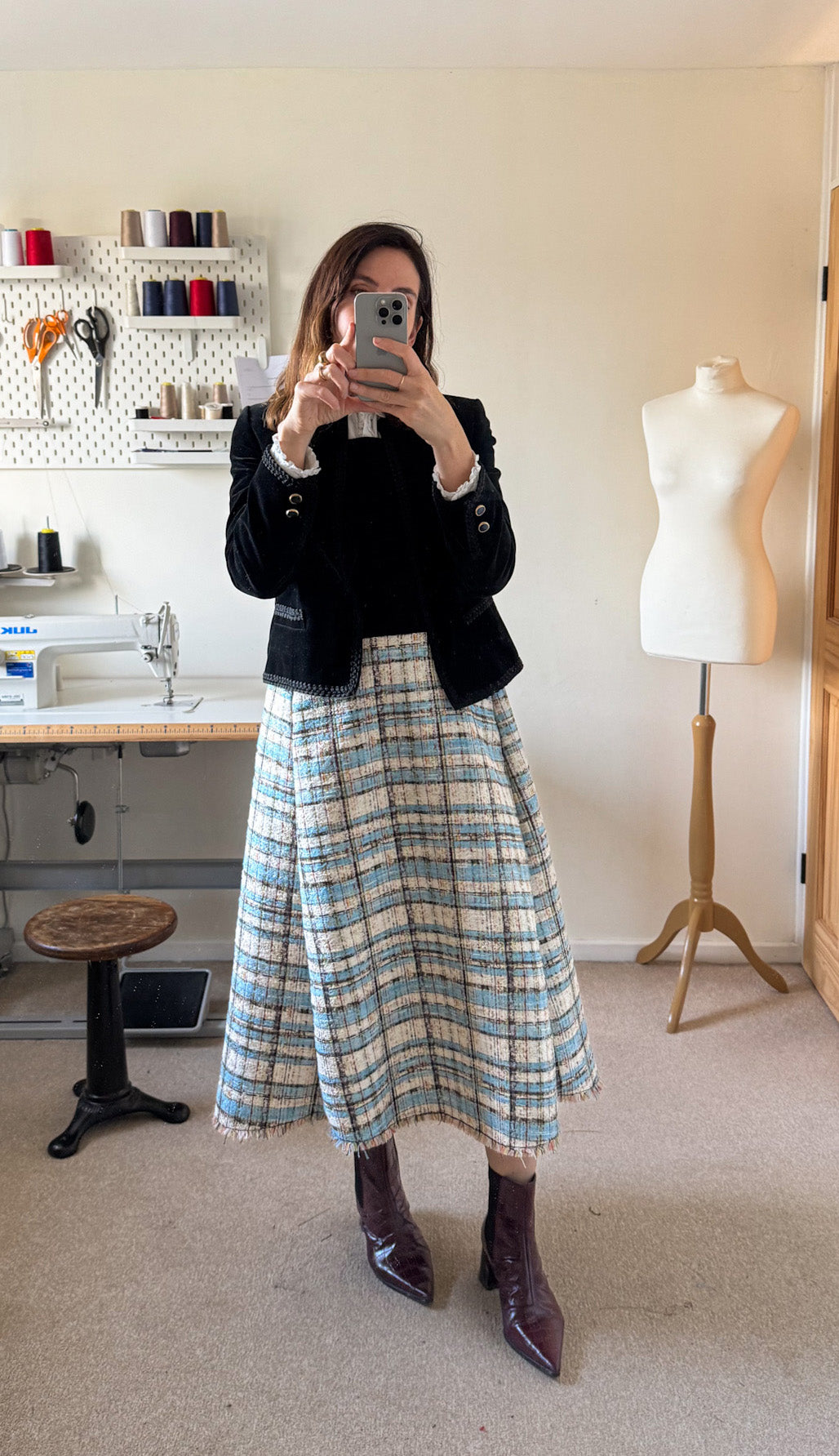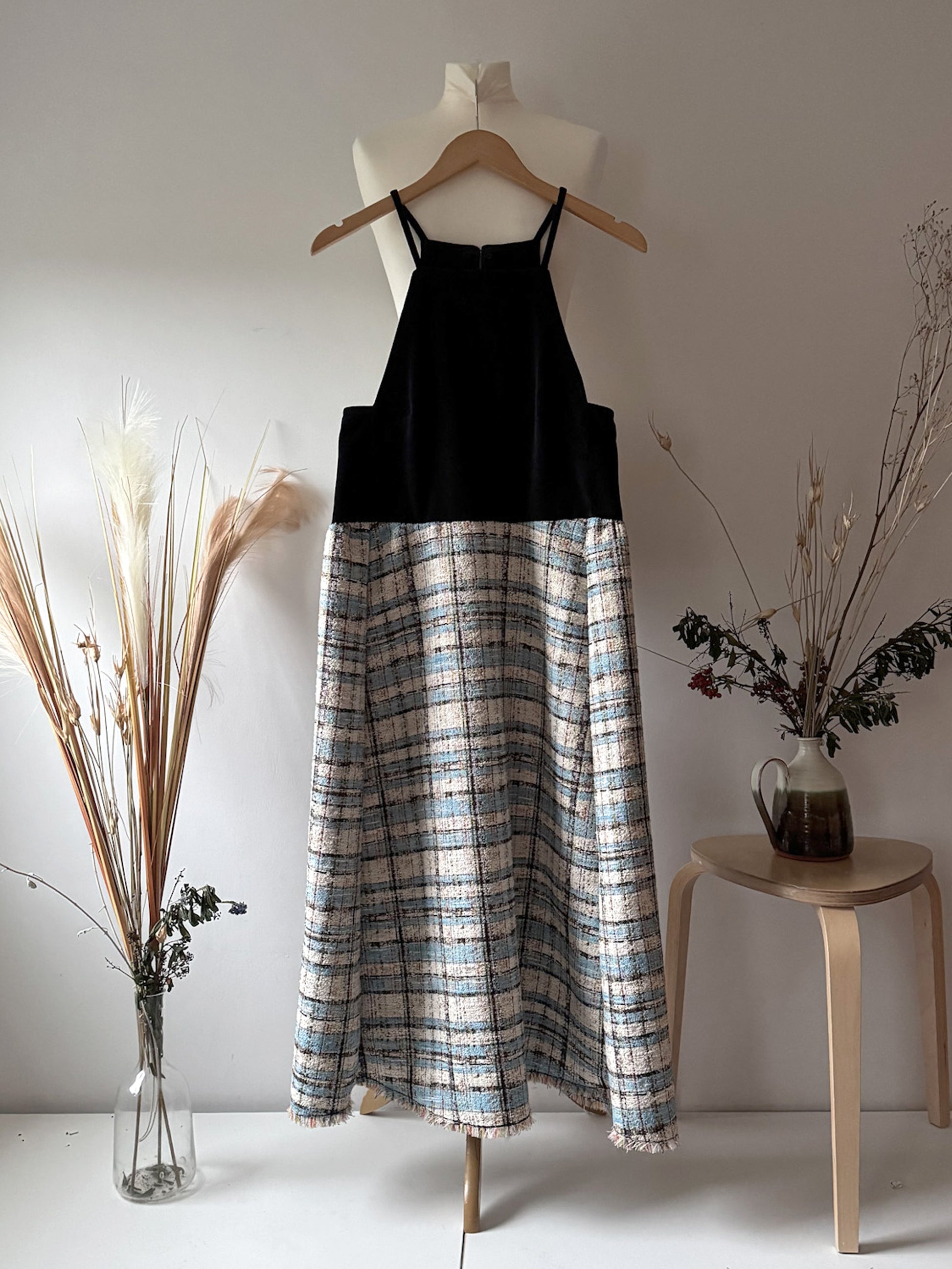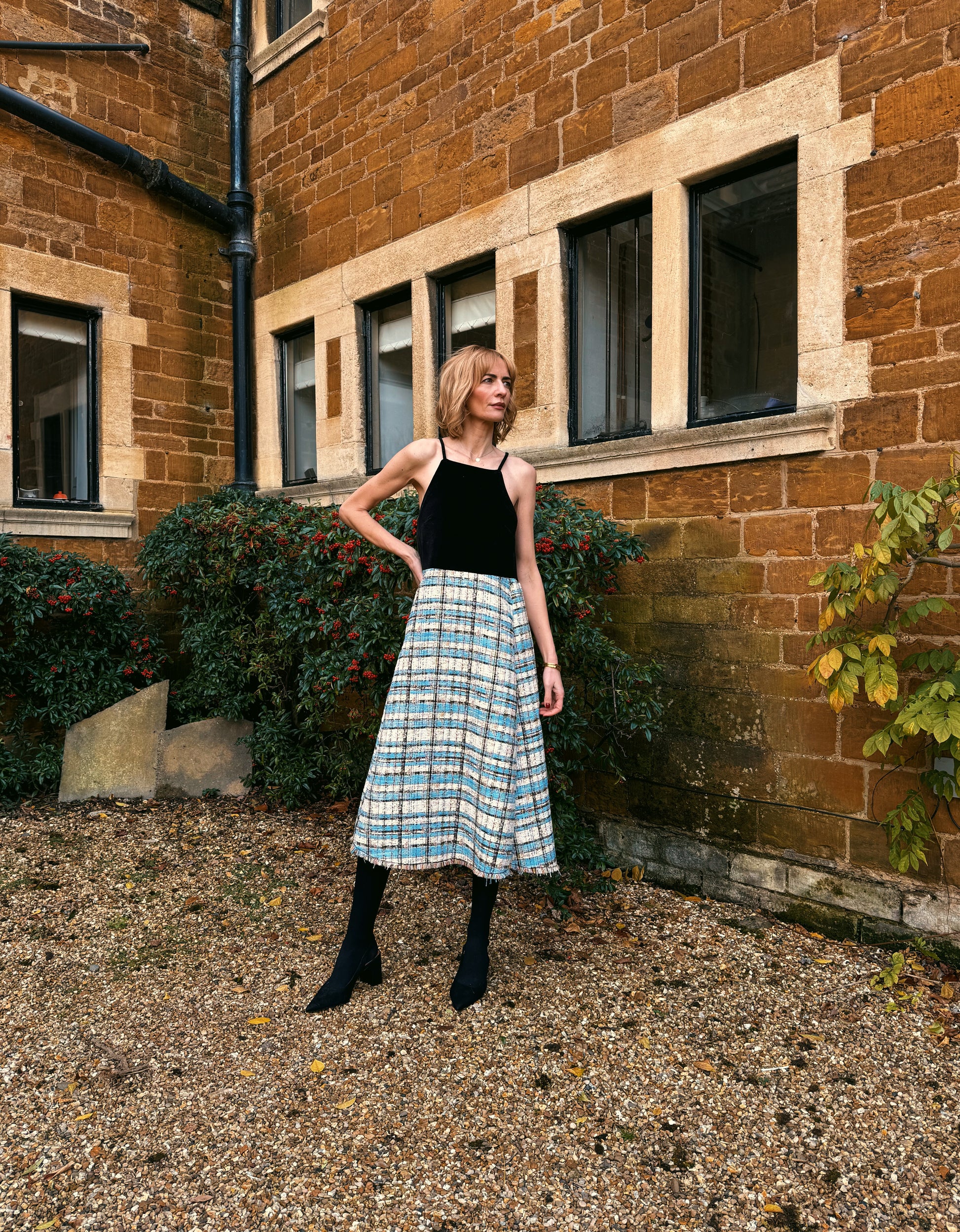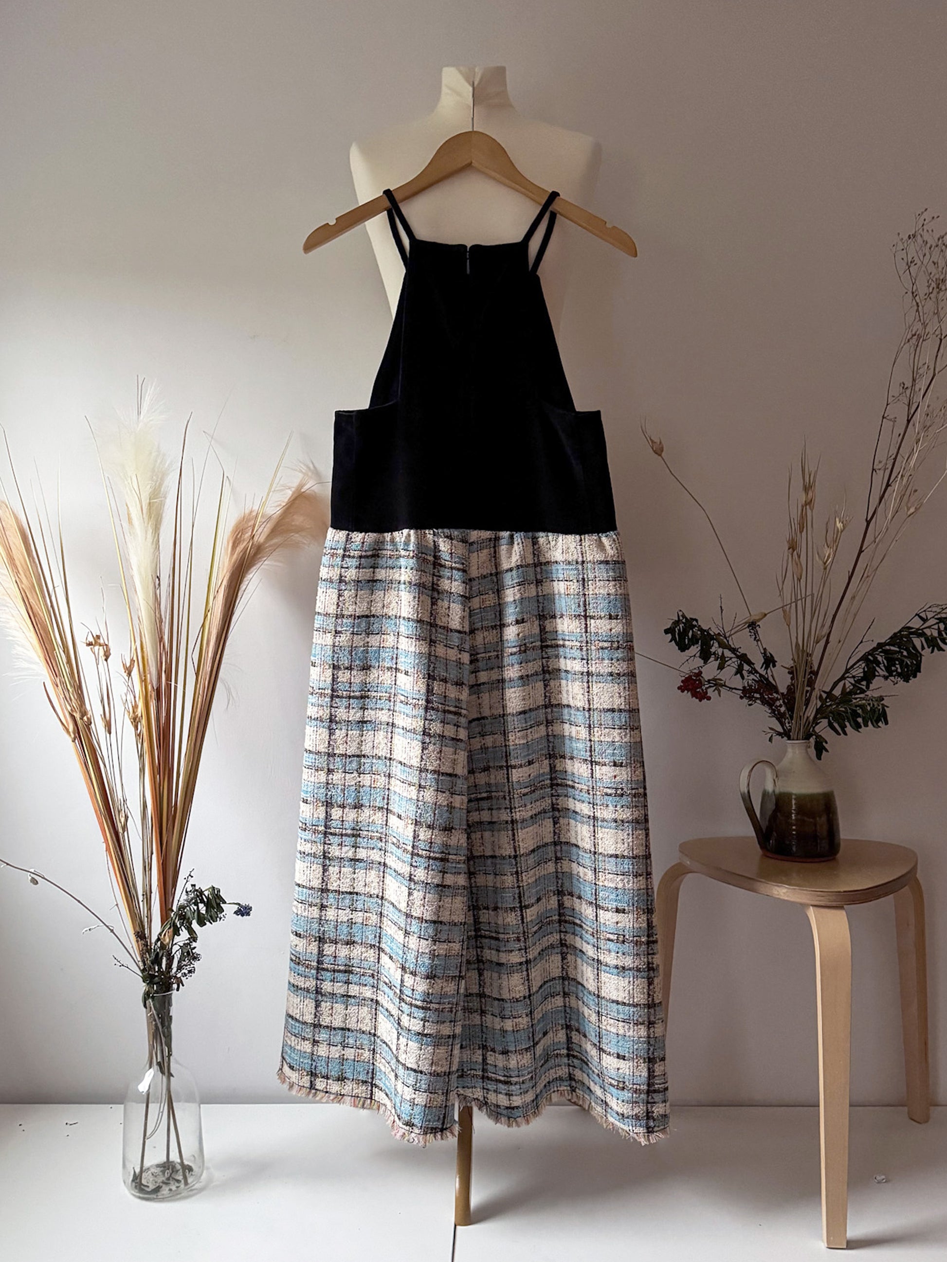 Handmade in my UK studio using dead-stock boucle fabric, this structured midi dress is the perfect choice for the festive season. The fabric is sourced from renowned European mills, the same used by esteemed couture houses. Handmade in my studio in limited quantities.