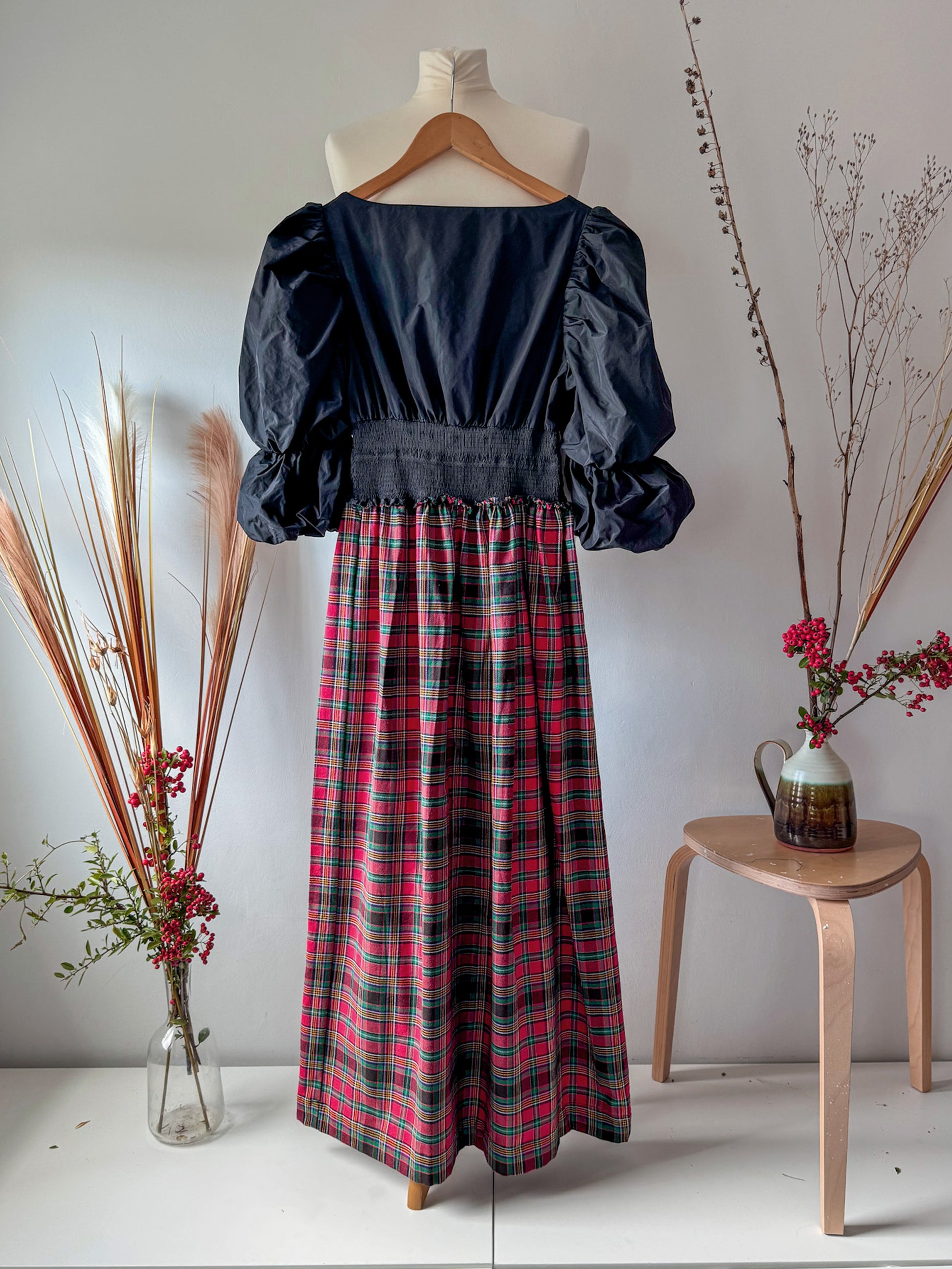 Handmade in my UK studio using a mix of premium deadstock cotton and recycled polyester, the LILITH Dress is a romantic, statement-making maxi. Featuring voluminous puff sleeves and a soft shirred bodice, it offers both drama and comfort in equal measure.